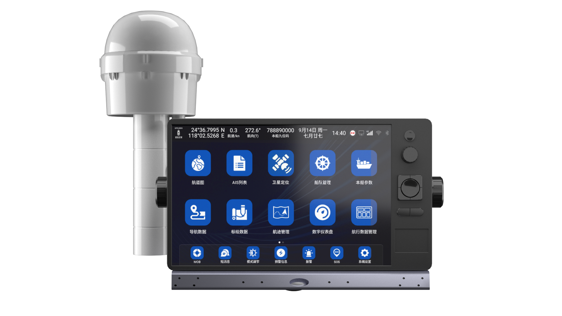 GS5310型北三RDSS船载终端是一款专业船用电子设备,由舱外的北斗三号通信定位终端和舱内的显控终端组成。通信定位终端集成有北斗三号短报文通信、GNSS定位、落水报警、紧急报警、拆卸报警、定时位置上报和公网通信等功能;显控终端集成电子海图显示、导航和智能融合人机交互等功能,配合船舶监控管理平台可满足船舶指挥调度与监控应用场景需求。